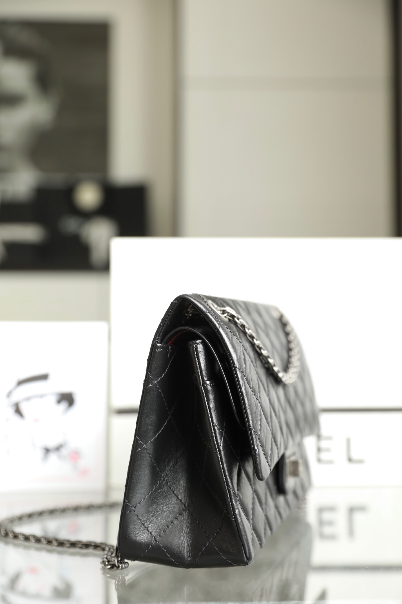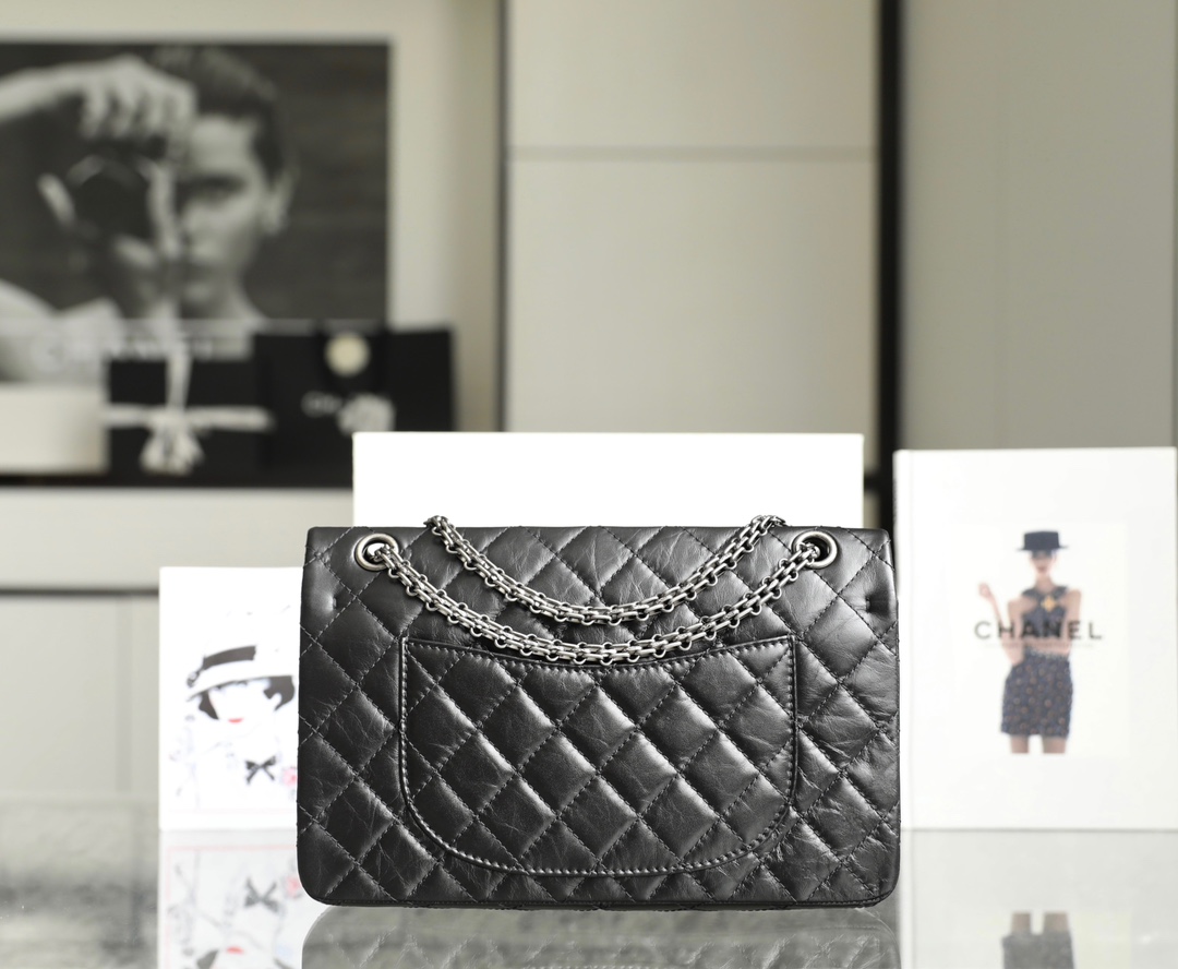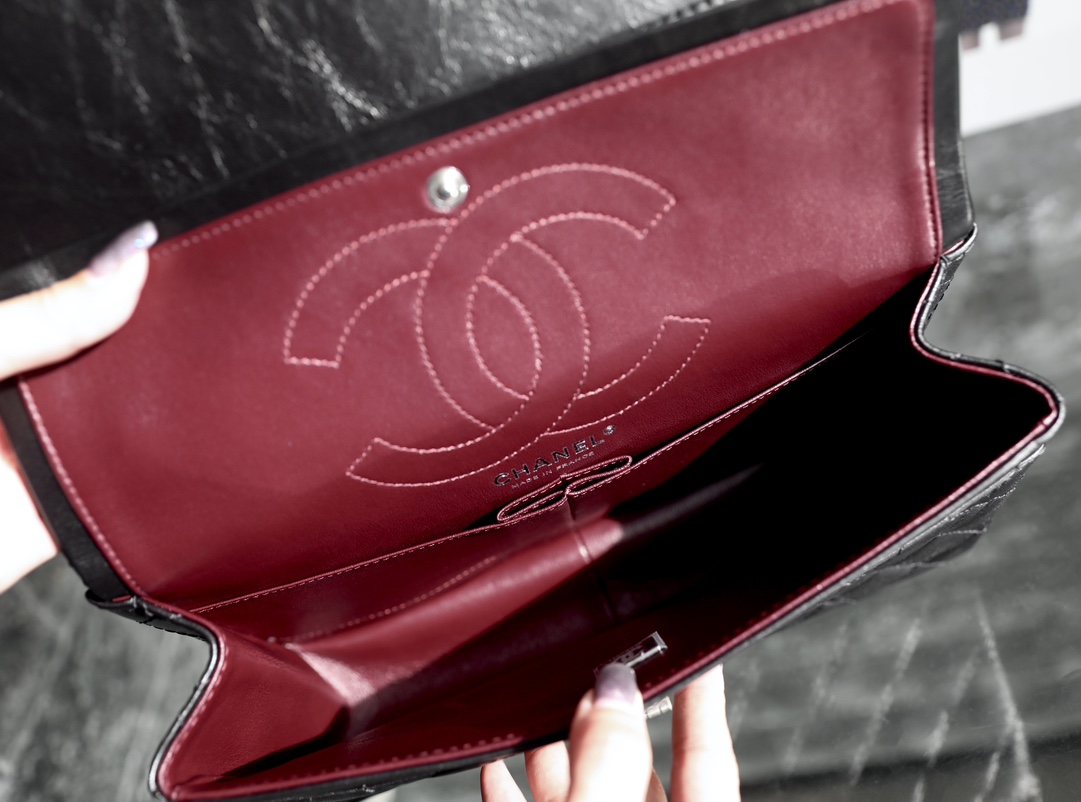 "Crafted with boutique-identical Montebell o leather and museum-quality aged silver hardware, this large 2.55 reissue is a tribute to Gabrielle Chanel’s 1955 masterpiece. The pleated sponge calfskin, 雕花链条,and deep burgundy lining make it a timeless investment—each crease and patina tells a story, growing more beautiful with every wear, just like the original icon."