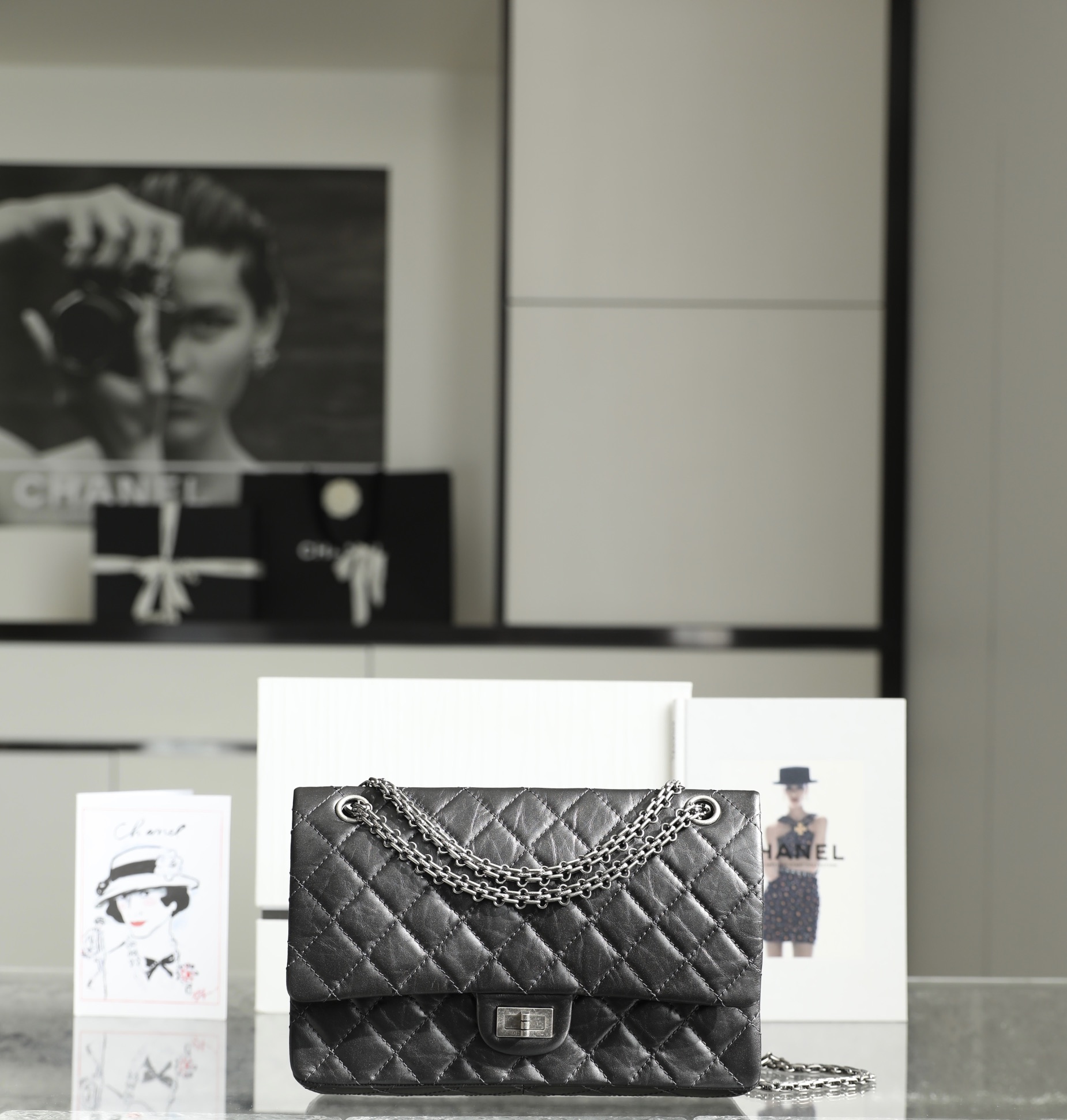 Aged Silver Hardware: 雕花 (Engraved) details and distressed finish evoke the glamour of Chanel’s golden era.
